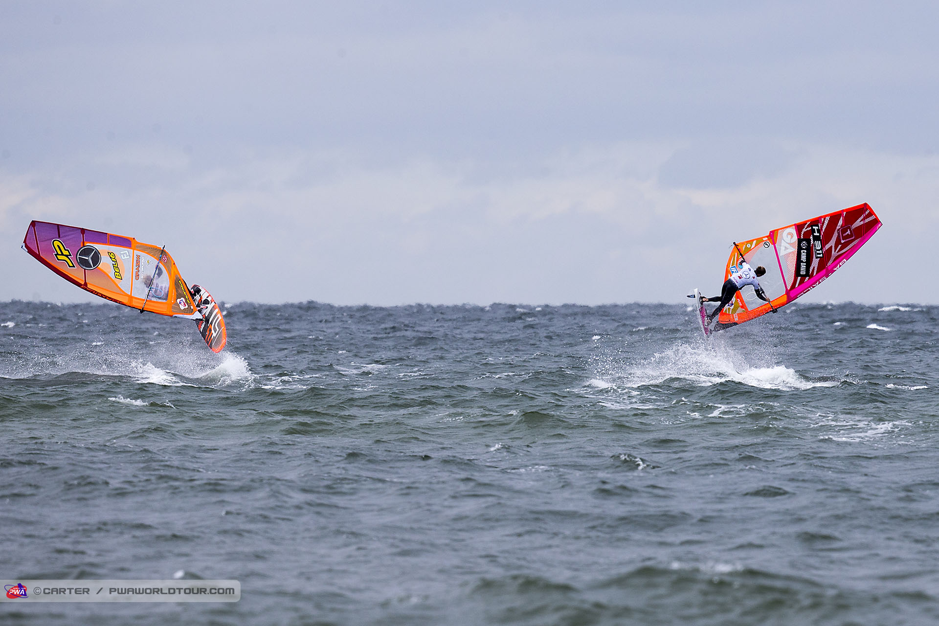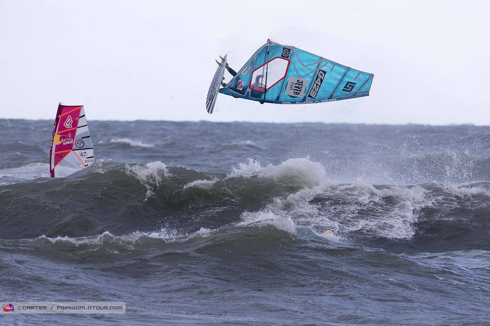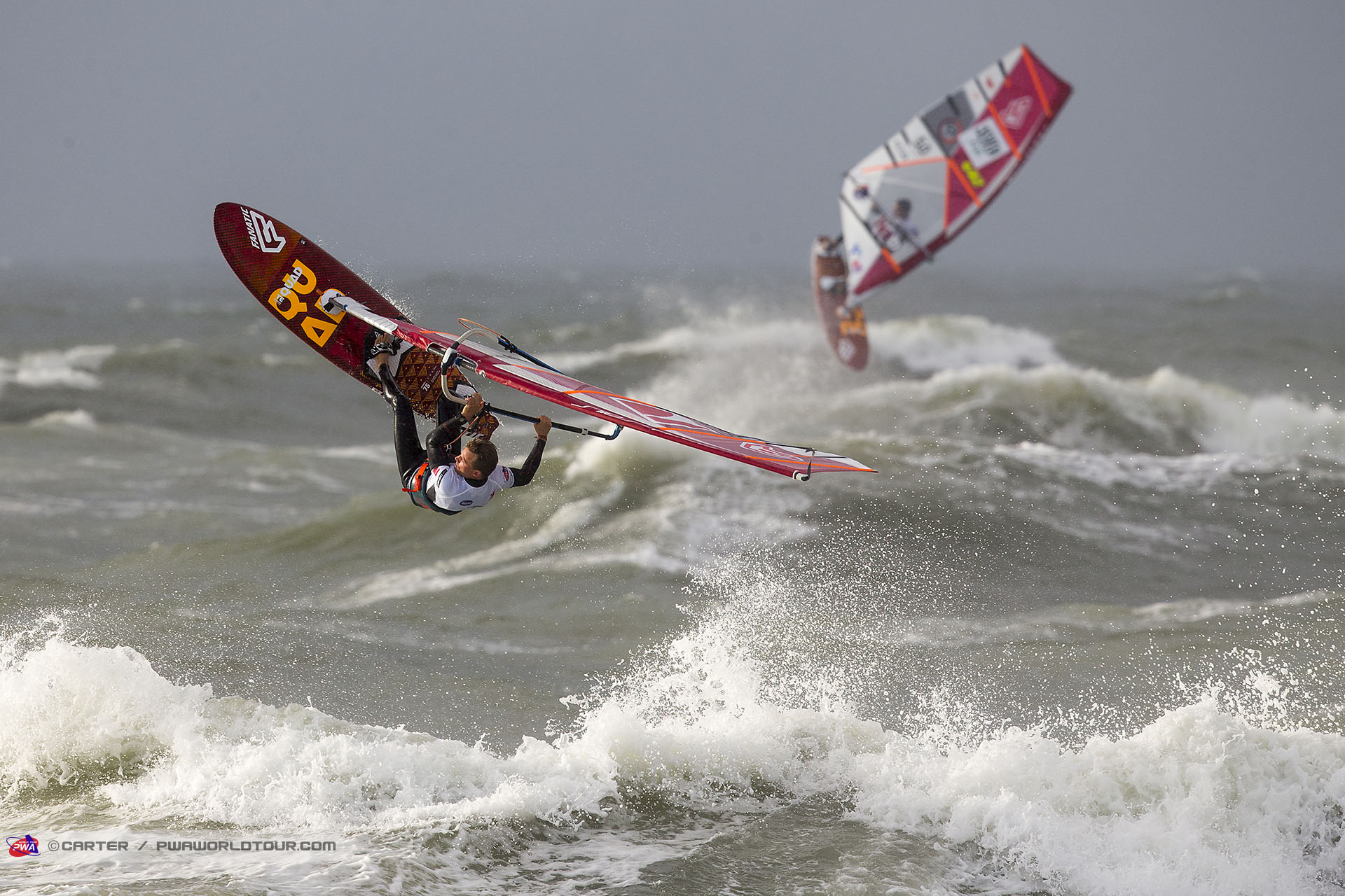 Matteo Iachino (Starboard / Point-7) and Pierre Mortefon (Fanatic / NorthSails) are almost inseparable at this stage of the season with the two heavyweights tied on points. However, it is the Italian who holds a slender lead after claiming victory in Denmark, which puts him ahead on countback, and he will be hoping to emulate his performance here last year, which saw Iachino at the top of the podium.